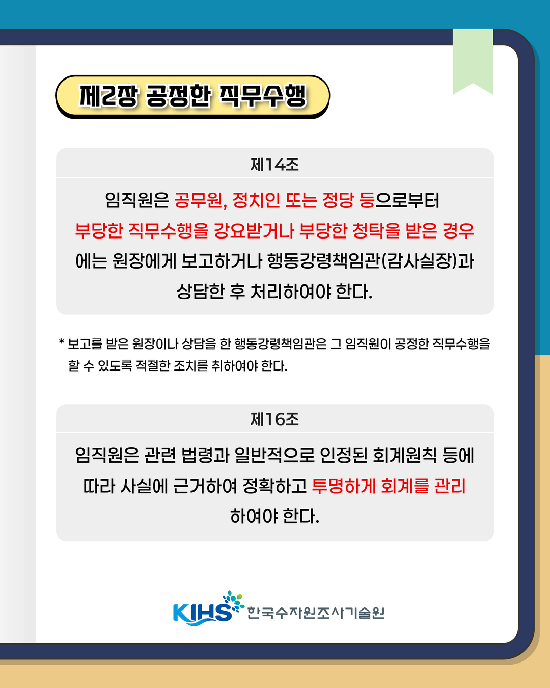 <윤리경영 카드뉴스> 부패방지와 깨끗한 공직풍토 조성을 위한 '임직원 행동강령'
