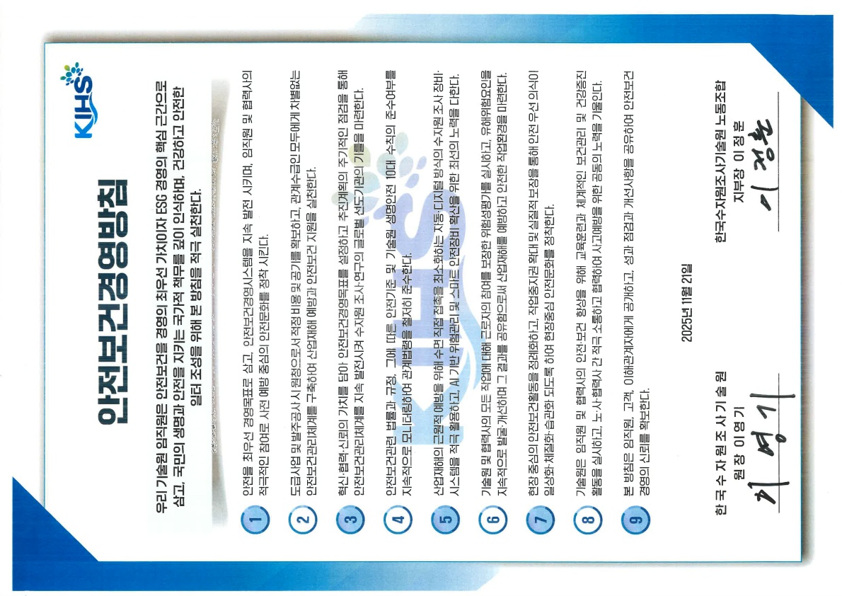 한국수자원조사기술원 안전보건경영방침